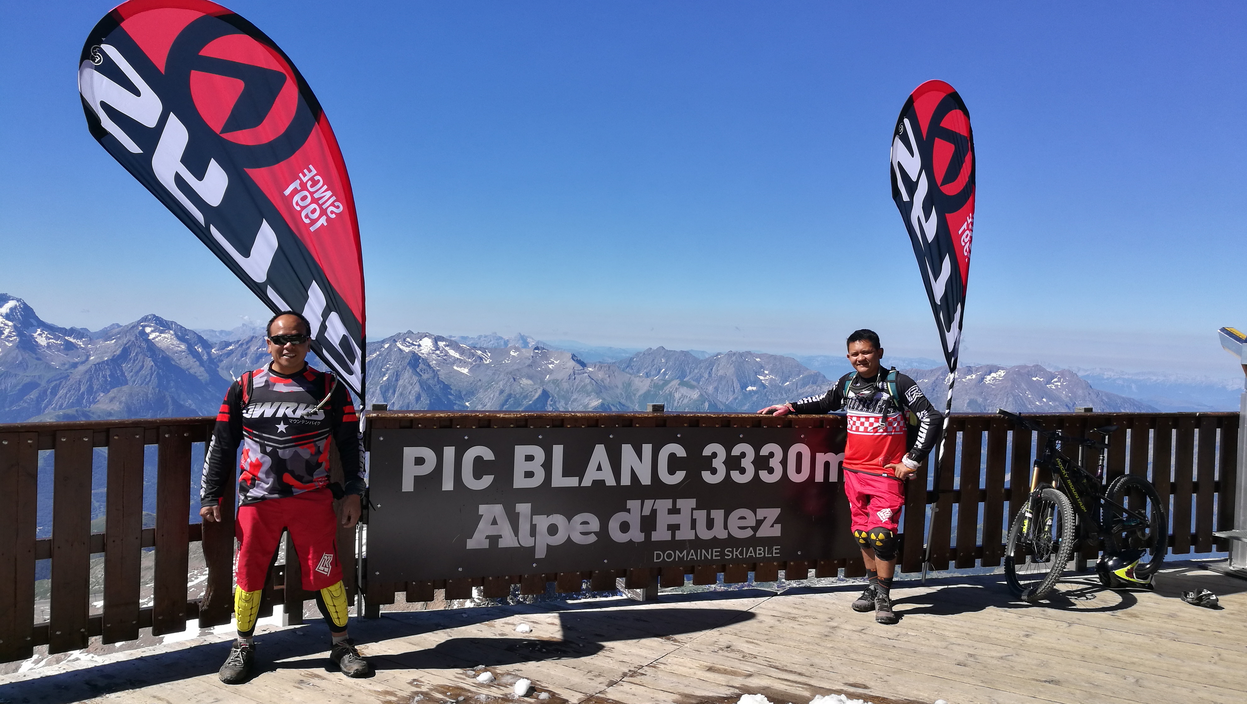 In the year 2017, one of these riders, Meor Wazir bin Zul’Aidin, competed at Megavalanche, held at Alpes d’Huez, France. To quote Meor, “The MEGAVALANCHE is undoubtedly one of the world’s most famous and not-to-be-missed mass-start Enduro/Downhill races. Departing from Le Pic Blanc (3300 m) above Alpe d’Huez and finishing at Allemont (720 m), you’ll ride a whopping 2500m of vertical drop from snow and ice down to the dusty single track.”