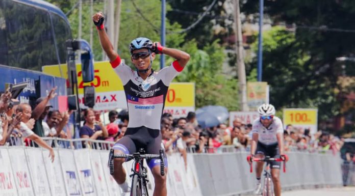 KARAK, 17 October 2019 - What a day it was for Terengganu Inc (TSG) as they clinched an exciting 1-3 podium finish in the third stage of the inaugural Tour of Peninsular (ToP) through Nur Amirull Fakhruddin Mazuki and Harrif Saleh.